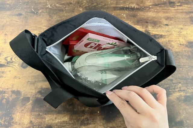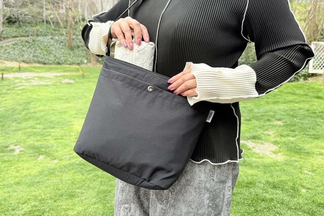 さらにショルダーストラップは約3.2cmと幅広めなので、パンパンに中身を詰めても肩が痛くなりにくかったです。「気軽に持てるかどうか」は出番に直結するポイントですが、その点でも使いやすさを感じました。