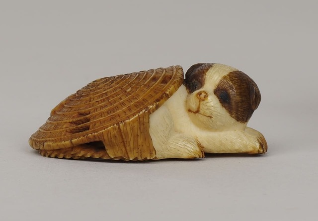 とはいえ、まず目に飛び込んでくるのは、その“かわいさ”。蓑笠にもぐりこんだ子犬、口から香りを吐き出す獅子など、どこかゆるくて、ちょっと不思議なものばかり。
