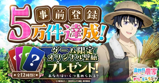 CTW株式会社は、ゲームサービス「G123」にて配信予定の新作ブラウザゲーム『異世界のんびり農家 ドリーミーライフ』が事前登録者数5万件を突破したことをお知らせいたします。これを記念し、TVCMの放映が決定いたしました。