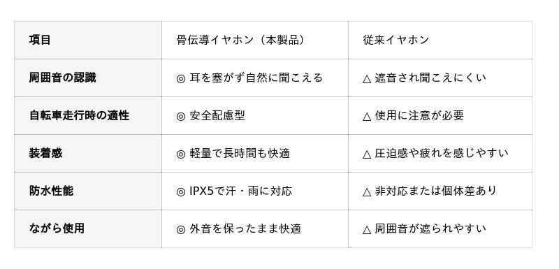 2026年4月より、日本では自転車の交通違反に対する取り締まりが強化され、「青切符」制度の導入により、イヤホン使用に関する規制も注目されている。特に、周囲の音が聞こえにくい状態での走行は安全面の観点から問題視されており、日常的に自転車を利用するユーザーにとっては、利便性と安全性を両立できるデバイスの選択が重要な課題となっている。