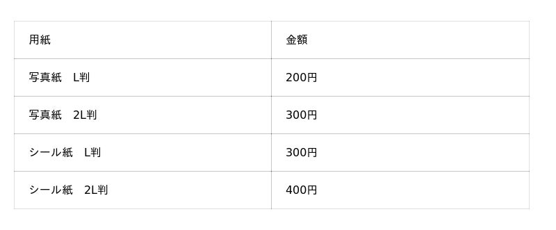 プリント料金