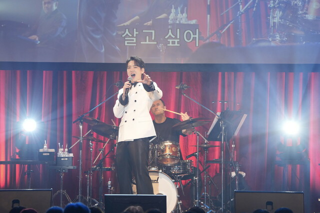 次に『エクスカリバー』から『王であるとは』と『ジキル&ハイド』のおなじみのナンバー『時が来た』を披露。豊かな歌声に早くもホールはKAIの世界に包まれていく。