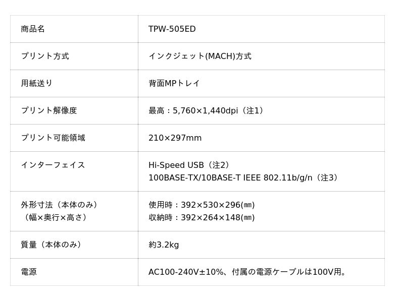 プリンタスペック