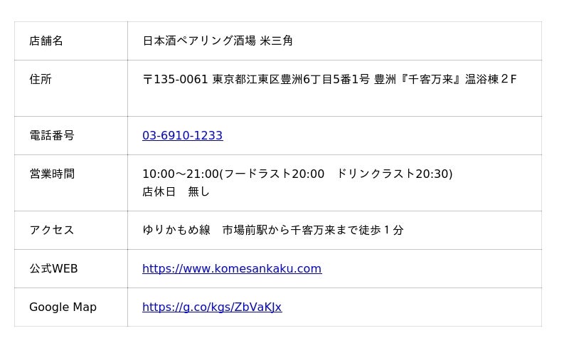 SAKEペアリング酒場「米三角」豊洲 千客万来2F