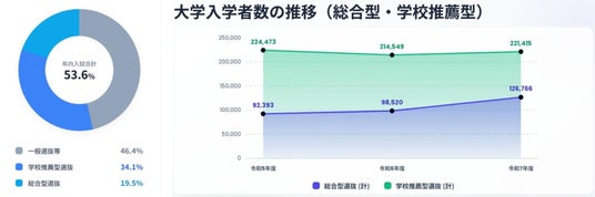 同時に、入試環境の変化が新たな格差を生んでいます。文部科学省の調査(令和7年度)によれば、総合型選抜と学校推薦型選抜を合わせた入学者が大学入学者全体の53.6%を占め、一般選抜を上回る結果となっています。総合型選抜では学力だけでなく「どのような経験を積み、何を考えてきたか」が問われますが、経験を積む機会はすべての学生に均等に開かれているわけではありません。こうした入試環境の変化が、経験の有無による新たな不平等を生み出しています。