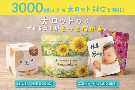 - 30個から:独自の印刷技術を活かした小ロットのオリジナルパッケージ制作