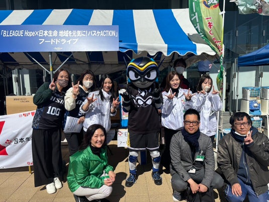 3月8日(日)スカイホール豊田で開催された富山グラウジーズ戦にて「B.LEAGUE Hope×日本生命 地域を元気に!バスケACTION」フードドライブを日本生命刈谷支社と実施し、314.4kgの食料品が集まりました。