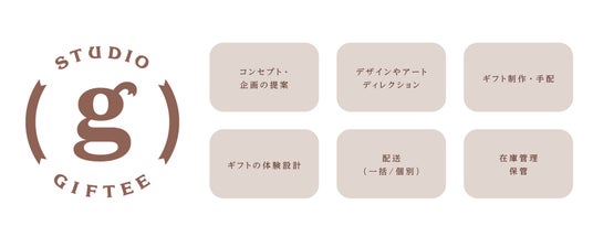 「STUDIO GIFTEE」は、ギフトプランニングのプロフェッショナルチームであり、ギフトの企画・制作サービスを提供します。企業のブランディングや、企業と顧客・従業員、自治体と住民とのよりよい関係づくりのためのギフト体験を支援。ギフトのナレッジが深いプランナーが、オリジナルの企画から制作、在庫管理から配送方法の設計まで伴走し、ギフトのお渡し体験まで含めてトータルでお届けします。