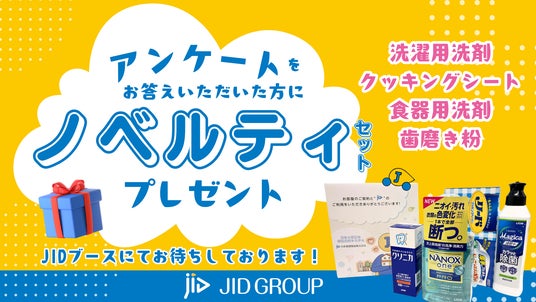 【ご来場特典】アンケート回答で「ノベルティBOX」をプレゼント!ブースにてアンケートにお答えいただいた方に、日用品がセットになったJIDオリジナルノベルティBOXのプレゼントをご用意しております。
