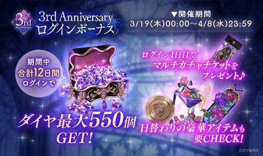 1.3周年記念ログインボーナス&ダイヤ増量キャンペーン!
