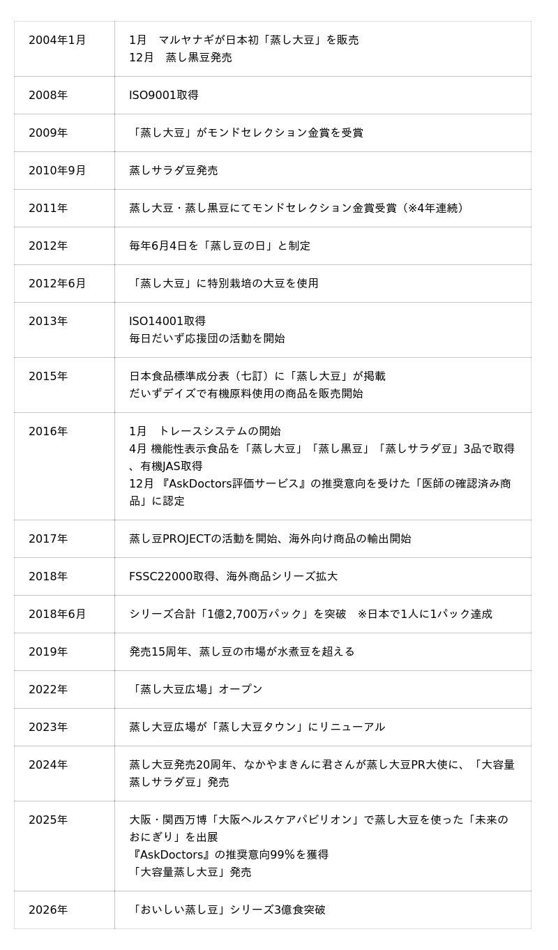 蒸し豆・佃煮・煮豆のマルヤナギブランドを展開する株式会社マルヤナギ小倉屋(神戸市東灘区 代表取締役社長:柳本勇治)は、2026年3月30日(月)に「おいしい蒸し豆」シリーズ累計出荷数が3億食を突破したことを記念して、自社コーポレートサイト内に「おいしい蒸し豆3億食ありがとう!特設サイト」を公開しました。当該サイトでは今後開催予定のイベント、消費者キャンペーン、SNSキャンペーンの情報の他、マルヤナギのおいしい蒸し豆を普段よりご愛顧いただいているマルヤナギ公式LINEのお友だちから寄せられたお祝いメッセージを掲載します。