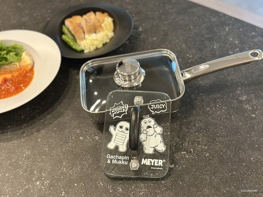 MEYER×dinos55周年×ガチャピン・ムックのコラボエッグパン 米カリフォルニアを拠点とする調理器具ブランドMEYER(マイヤー)社とdinos55周年、ガチャピン・ムックがコラボレーションした玉子焼き用のフライパン「≪ガチャピン・ムックVer≫MEYER/マイヤー 蓋付きエッグパン+プレス特別セット」を企画・開発し、ディノスオンラインショップで販売します。エッグパンはオールステンレスで蓄熱性に優れ、セットのガラス製の蓋を使えば炒め物や少量の煮物、餃子などにも便利。肉や魚に香ばしい焼き目をつけることができるフライパンプレスは、ガチャピン・ムックのイラストをプリントしたdinos限定モデルです。なお、「ガチャピン・ムック みんなともだちの日」を記念して、4月2日(木)放送のフジテレビ番組『ノンストップ!』の通販コーナー『いいものプレミアム』で放映。4月6日(月)まで期間限定特別価格で販売します。