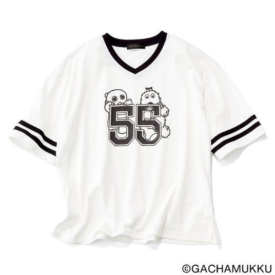 「55」ロゴが際立つ「ガチャピン・ムック ナンバーTシャツ」