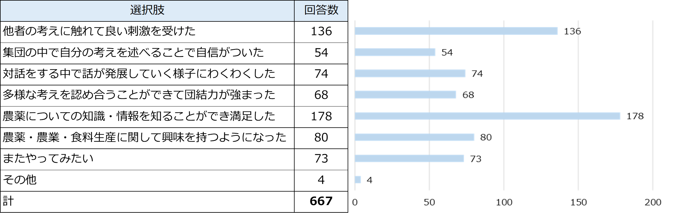 ・農薬に対し、少し抵抗感があったが、インターネットや文献で、様々なメリットを知り、良いイメージを持つことができた。