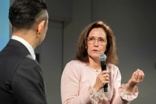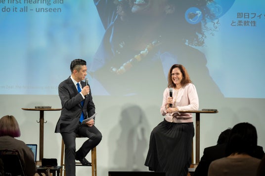 また、デンマーク本社にてアジア地域のマーケティングを統括するコマーシャルディレクターのRikke Nielsen(リッケ・ニールセン)と当社代表取締役社長の齋藤徹によるトークセッションにおいて、リッケ・ニールセンから「ジール」の開発背景と約7年をかけて開発されたことが明かされました。さらに、海外では発売から約3か月で29,000件以上のフィッティング実績を有し、既存顧客の買い替えだけでなく、新しいユーザー層の獲得につながっており、特に若年層からの支持を得ている点を報告しました。齋藤からは補聴器装用率の向上に貢献する製品としての期待と、海外同様に日本でも「ジール」で市場そのものの拡大につなげたいとの意欲を示しました。