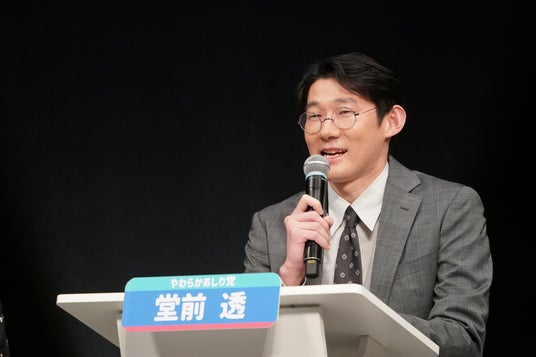 続いて説明したのは、「やわらかおしり党」の堂前。「ワクワクするような政策を持ってきました」と笑顔で発表した政策は、「マイナンバーカードに好きな食べ物を記載する」というものです。外食の際、マイナンバーカードを提示すると好きな食べ物が2割引になるという特典がつくそう。好きな食べ物は毎年変更できるなど、細かな点も説明しつつ、「国民の好きな食べ物を把握してる国ってかわいくないですか?」とアピールしました。