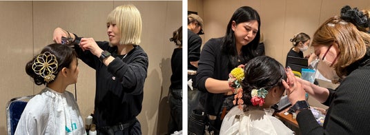本イベントでは、出場者一人ひとりの個性と品格を引き立てるヘアメイクを担当し、和の要素と現代的な美意識を融合させたスタイルで、公の場にふさわしい印象づくりをサポートしました。Ashは今後も、外部ステージでの経験を通じて美容師の成長を促進するとともに、美容の技術による価値提供の幅を広げてまいります。