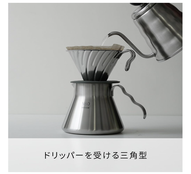 独特な三角フォルムは見た目だけではなく、香りを逃がしにくい設計で、ドリップとの相性も考えられています。