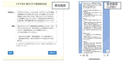 ・薬剤師が最終確認した後、「送信する」ボタンを押すことで、患者のLINEへ服薬指導の内容(要約)が届きます。