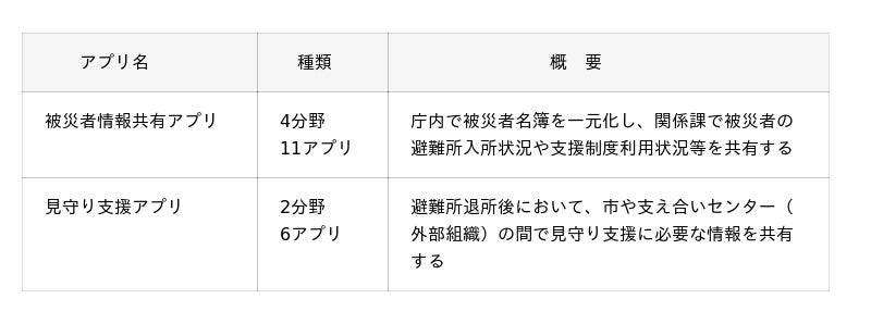 被災者情報共有アプリ(4分野 11アプリ)
