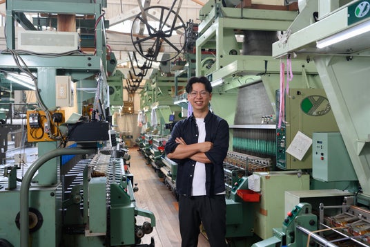 高岡細巾織物株式会社(福井県坂井市) 取締役 高岡周平さん「入間市の象徴が詰まったデザインに一目で魅了されました。特に伝統的な『矢絣柄』と、可愛らしい『いるティー』が共存する構成は、伝統を大切にしながら未来へ歩む入間市の姿勢を感じさせ、弊社の越前織技術でぜひ形にしたいと強く感じ、選ばせていただきました。