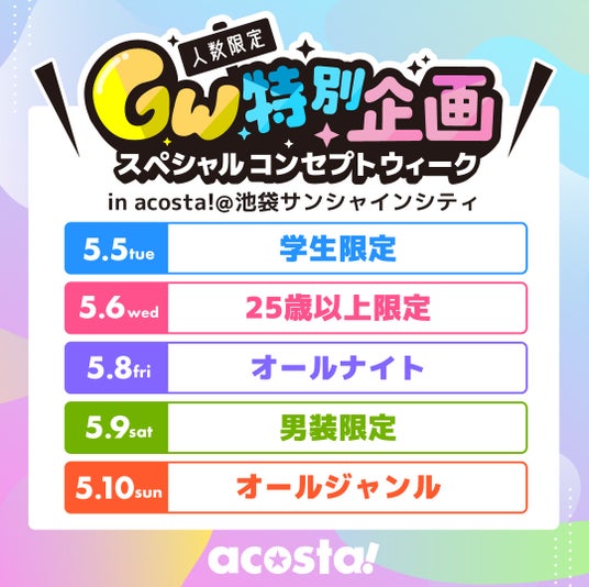 「人数限定\GW特別企画/スペシャルコンセプトウィークacosta!@池袋サンシャインシティ」開催概要