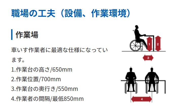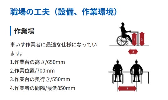 ▲車いす利用者に最適な仕様に調整された作業場(出典:オムロン京都太陽株式会社 https://www.kyoto-taiyo.omron.co.jp/impact/)