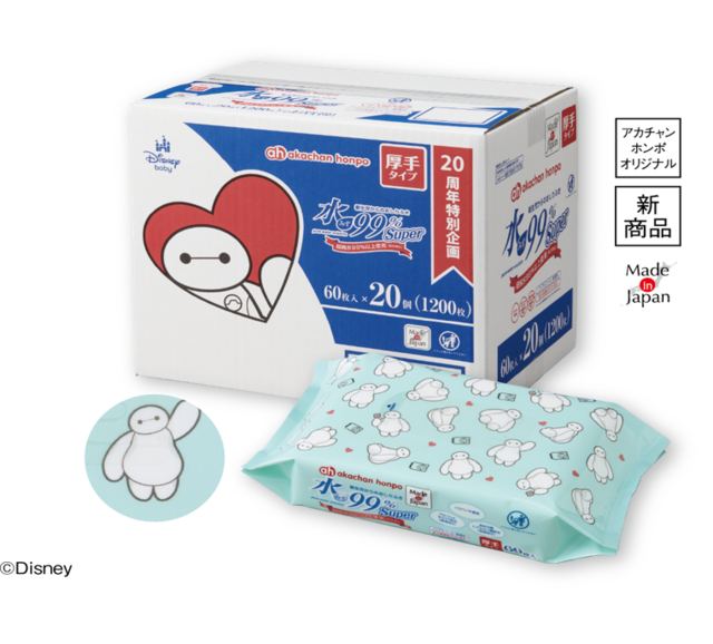 アカチャンホンポの大ヒット商品「水99%Super 新生児からのおしりふき」の厚手タイプに、ベイマックスデザインが新しく登場!