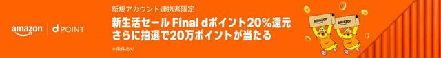 【こちらのページ】からキャンペーンにエントリーし、アカウント連携済みの状態で、対象期間中にはじめて購入したdポイント付与対象商品のお買い物総額が、20%還元の対象になります(上限1,000ポイント、期間・用途限定)。