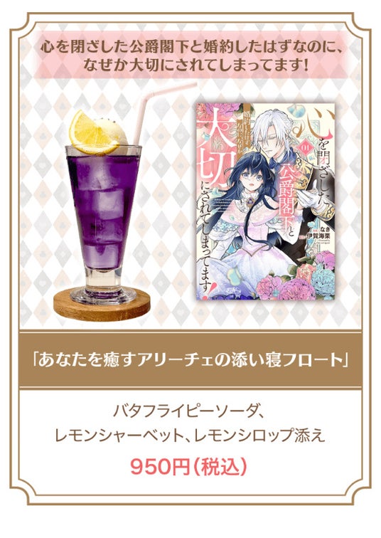 作品をイメージした全14種類のコラボドリンクが楽しめます。