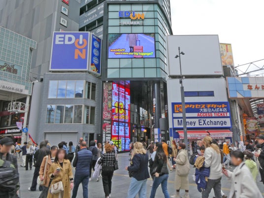 - シンクロ放映プランでは、「EDION VISIONなんば」のスピーカーから音声出力が可能(時間制限あり)です 。視覚と聴覚の両面から、歩行者の記憶に残る広告展開を実現します。