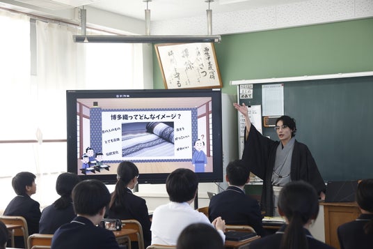 先日、福岡市立西陵中学校で、博多織をテーマにした授業・講義への登壇、体験ワークショップ、そして博多織を用いたプロダクトアイデア、デザインの考案など参加型の授業を実施しました。