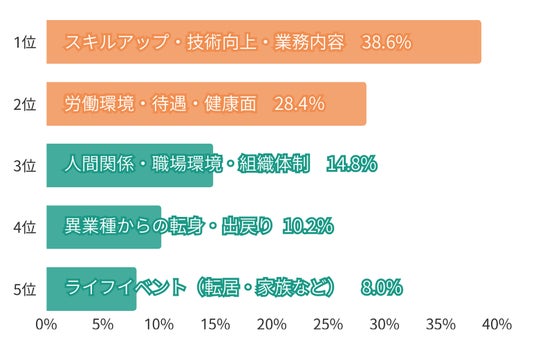・3位「人間関係・職場環境・組織体制」、4位「異業種からの転身・出戻り」、5位は「ライフイベント」働き方や人生設計に関わる理由も上位に。
