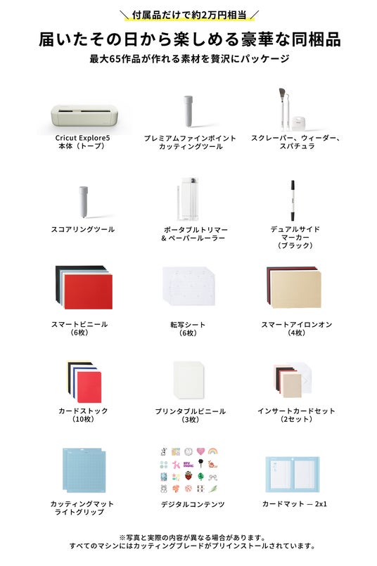人気の基本ツールに加え、フルカラー作品が作れる「プリンタブルビニール」や「カードセット」など約20,000円相当分を贅沢にパッケージ。