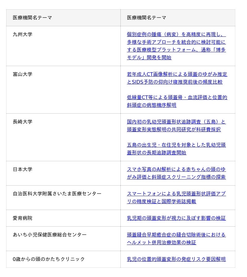 参考プレスリリース:株式会社ジャパン・メディカル・カンパニーが慶應義塾大学と共同研究契約を締結し頭蓋変形に関する研究を開始