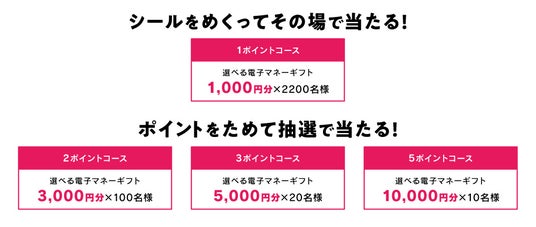 ポイントに応じて最大10,000円分の電子マネーギフトが抽選で当たります。