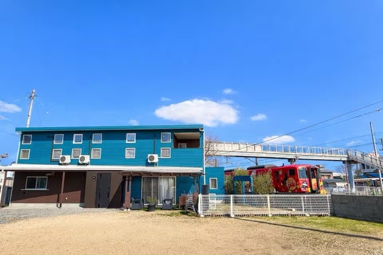 子どもはアスレチックに夢中!大人はリビングでゆっくり乾杯。アンパンマン列車が見える一棟貸し宿