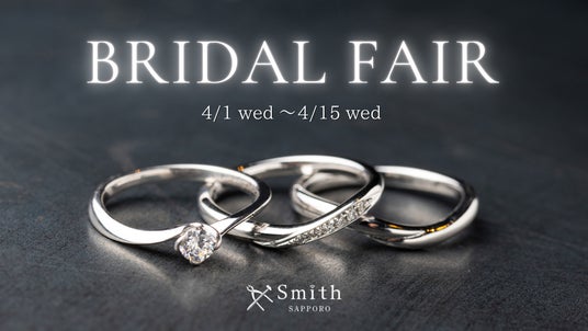 手作り結婚指輪・婚約指輪の専門店「工房Smith札幌本店」は、2026年4月1日(水)から4月15日(水)までの期間、3本セット(結婚指輪ペア+婚約指輪)のご成約で貴金属代金および婚約指輪のダイヤモンド代金が15%OFFになる「春のブライダルフェア」を開催いたします。