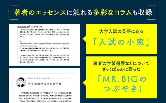 『英文解体新書』シリーズ(研究社)や『英語の読み方』(中公新書)などのベストセラーを著し、英語学習者から厚い支持のある北村一真先生が英文を徹底解説します。英検2級やTOEIC600~800点程度の学習者が、上級レベルへと羽ばたくために必要な「細部まで完璧に理解する」ための指針を提示します。文法・語法の深い解説はもちろん、著者の英語教育への洞察が光るコラム「入試の小窓」や、英語遍歴をざっくばらんに語った「MR. BIGのつぶやき」のコラムなど、著者のエッセンスに触れる読み物も充実しています。