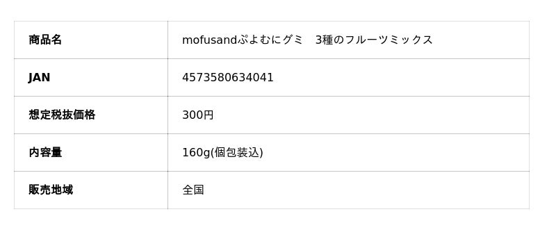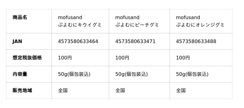 栄光堂ファクトリー株式会社(本社:岐阜県大垣市、代表取締役社長:水上寛行)は、2026年4月6日(月)より、人気キャラクター「mofusand」をパッケージデザインに入れた「mofusand ぷよむにグミ」の好評を受け、新商品として「mofusand ぷよむにグミ3種のフルーツミックス」を発売いたします。