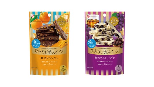 春夏限定パッケージのひとりじめスイーツ贅沢オランジェ(左)、ひとりじめスイーツ贅沢ラムレーズン(右)