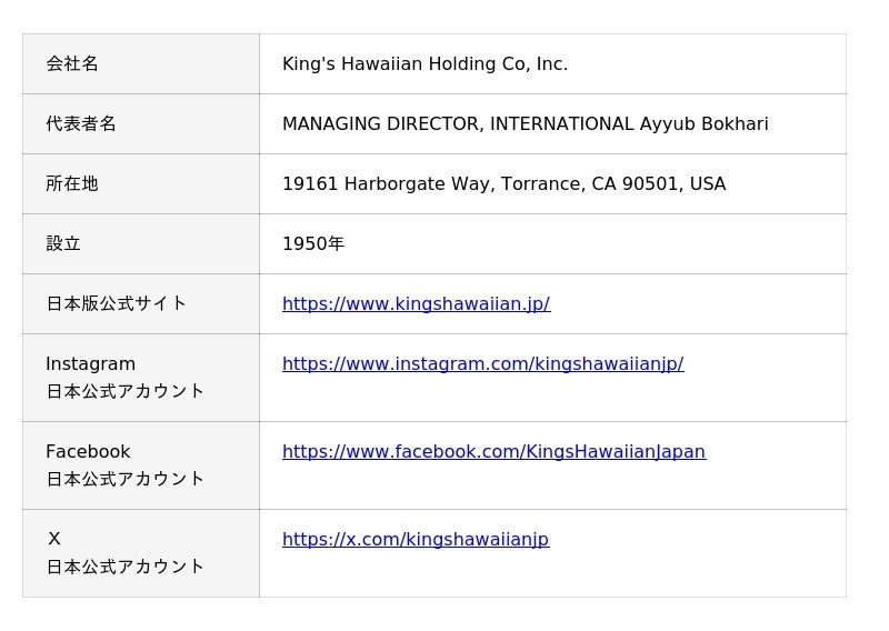 「KING’S HAWAIIAN」は、1950年にハワイ州ヒロで創業したベーカリーブランドです。創業当時から受け継がれる伝統のレシピと厳選された素材によって生み出されるオリジナル・ハワイアン・スウィートロールは、世代を超えて多くの人々に愛され続けています。そのやわらかな甘みと、誰とでも分け合いたくなる優しい味わいは、創業以来大切にしてきた“人と人をつなぐブレッド”という想いを体現しています。