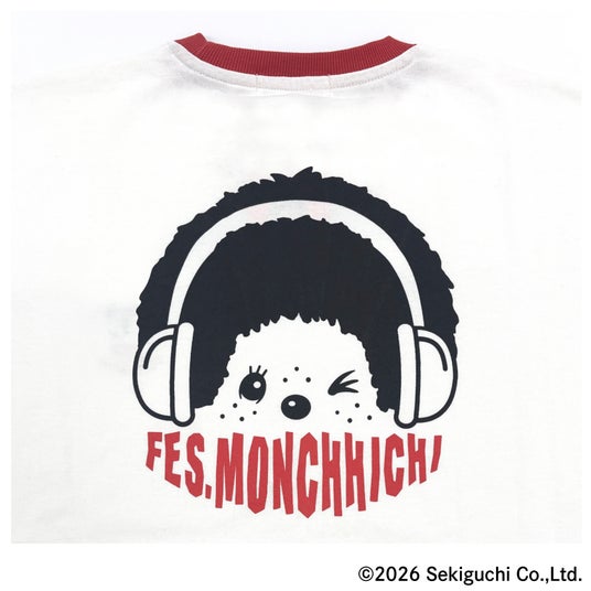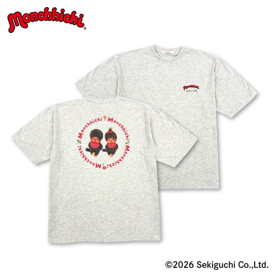 商品特長:フロント胸元とバックスタイルに「モンチッチ」をプリントし、襟には赤の配色を施したTシャツ。