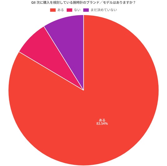 『直近の売却代金の主な使い道は?』の問いで「別の腕時計の購入(買い替え)」と回答した層に対し、次に購入を検討している腕時計のブランド/モデルを尋ねたところ、「ある」83.54%が最多となりました。