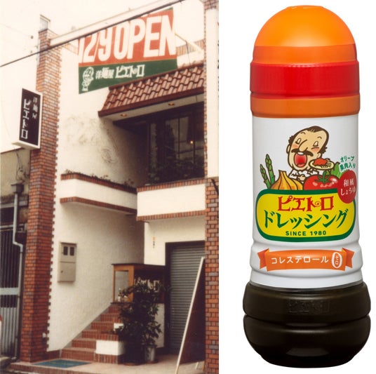 ピエトロのはじまりは、1980年に福岡市の繁華街・天神にオープンした、小さな一軒のパスタ専門店『洋麺屋ピエトロ』。麺が茹であがるのをお待ちいただく間、前菜代わりに出していたサラダのドレッシングが話題となり、「分けてほしい」というお声に応え商品化したのが、看板商品の「ピエトロドレッシング 和風しょうゆ」です。