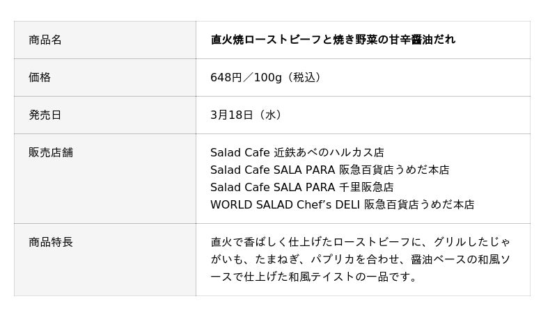 サラダカフェ株式会社は、野菜と肉をキーに、調理法や組み合わせる食材、調味料を工夫し、食材の美味しさを引き出したこだわりの「サラダ料理」3品を、関東・関西の店舗にて2026年3月および4月に発売します。
