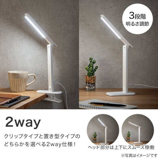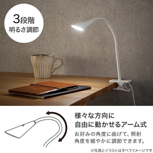 自由に動かせるアーム式。クリップタイプだからデスク以外の場所でも使いやすい。