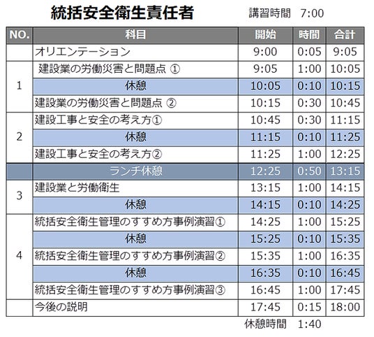【統括安全衛生責任者講習】