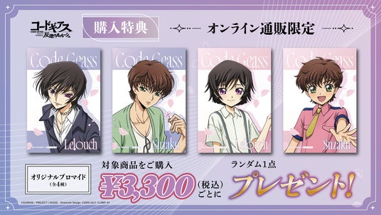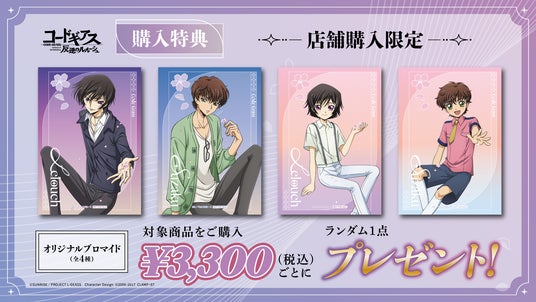 開催期間中、対象商品を3,300円(税込)お買い上げごとにランダムで【購入特典ブロマイド (全4種)】を1枚プレゼントいたします。