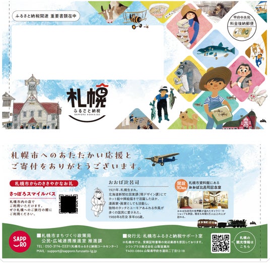 寄付をしていただいた方へ寄付金受領証明書などを送付する封筒及び圧着はがき(※1)のデザインに、おおば作品を起用します。対象となる寄付者は、令和8年4月1日~8月下旬(※2)までに札幌市にふるさと納税をした方です。